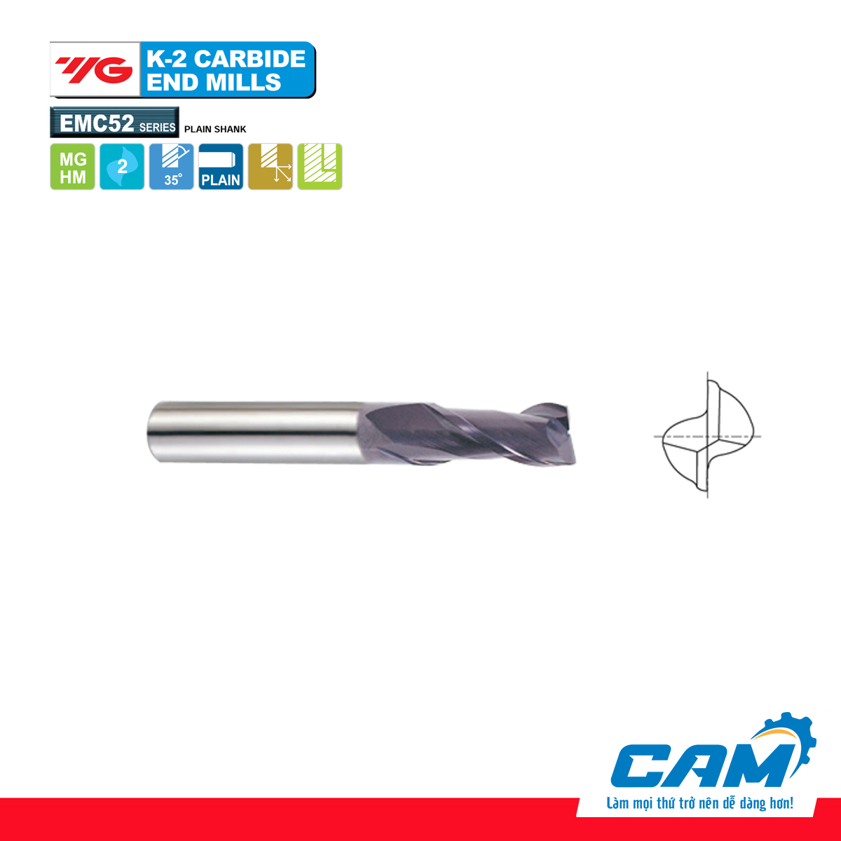 Dao phay hợp kim 2 me K-2 Plus EMC52 Series – YG1