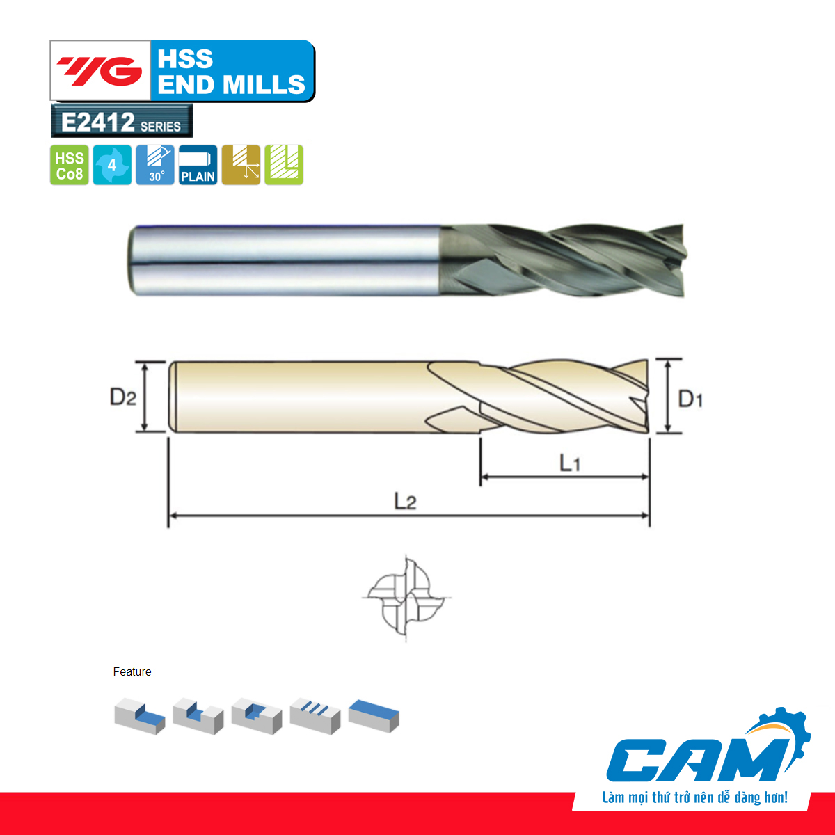 DAO PHAY THÉP GIÓ HSSCO8 4 ME YG1 E2412…SERIES